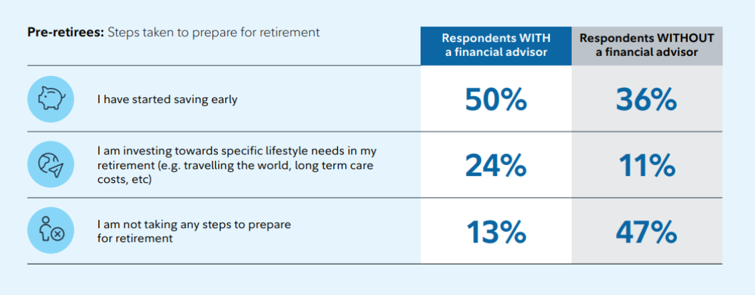 According the Fidelity Retirement Report 2025, nearly half of Canadians without a financial advisor are not taking any steps to prepare for retirement! (see chart below).